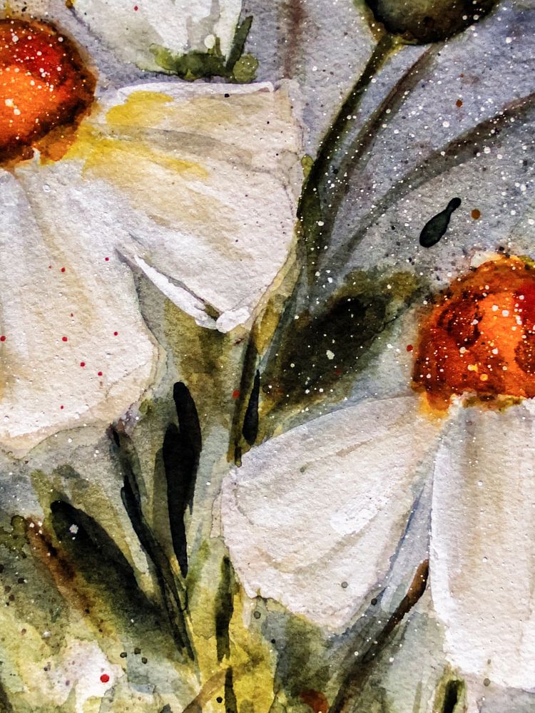 Daisies , daisy , original , watercolor on Schöllershammer Nr . 10 , Meadow Flower Painting , Painting , Art Painting , Floral Art , Still Life , Flora , Flowers, Botany , summer , summer flower white, green , beauty , environment , nature , wildflowers