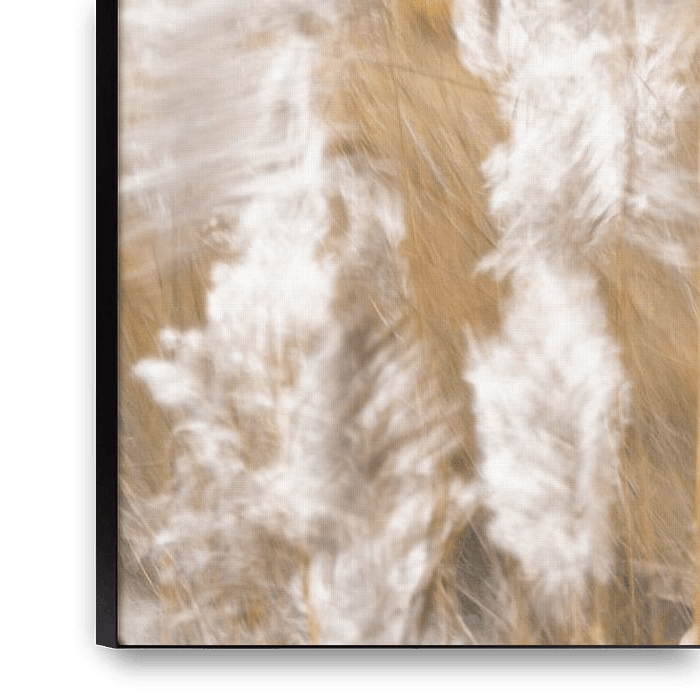 Let yourself be carried away by the rhythmic movement of nature. In this work, the boundary between photography and painting becomes blurred. The swaying reeds, captured in warm shades of beige and golden yellow, bring a serene dynamism to the room. The soft blur creates a dreamlike atmosphere that radiates tranquillity, as if the wind…