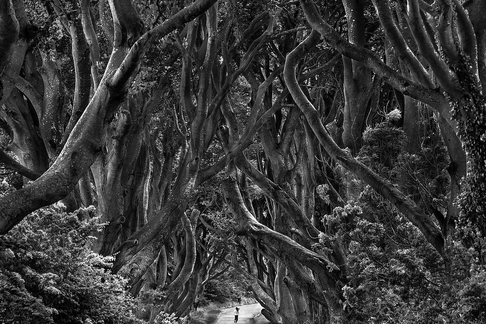 Avenue with unusual trees in Northern Ireland. Became known as the Kings Road in Game of Thrones.