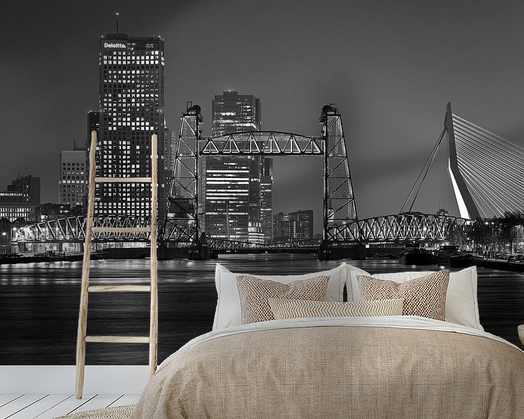 Buy this of Rotterdam De Hef in Rotterdam with the skyline black and white by Anton de Zeeuw on canvas, ArtFrame, poster and wallpaper, printed on demand in high quality.