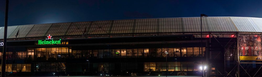 De thuishaven van betaaldvoetbalclub Feijenoord Rotterdam. Deze foto is geschoten tijdens de doordeweekse speelronde in de Eredivisie tegen Go Ahead Eagles. De wedstrijd werdt door Feijenoord gewonnen met maar liefst 8-0. Ook buiten het stadion is het dan genieten van alle geluiden die uit het stadion komen.