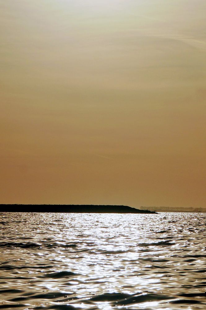 Deze foto is gemaakt bij zonsondergang. Mooie rustige golven en een mooie orangje kleur van lucht.