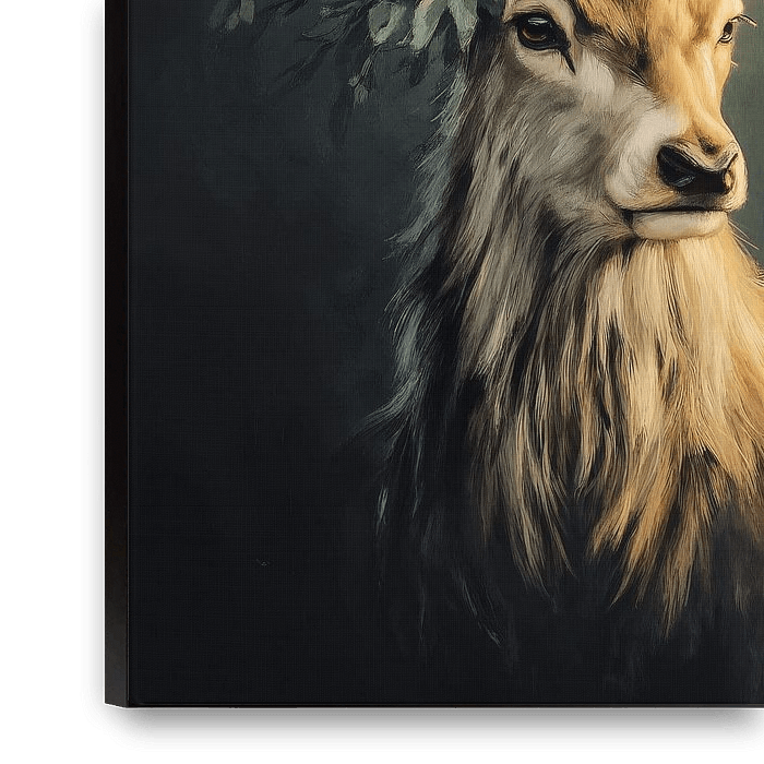 A digital artwork of a majestic deer, adorned with a lush crown of red berries and golden leaves. The soft, warm light and misty background create a mysterious atmosphere, while the deer's expressive gaze exudes wisdom and serenity. The combination of realistic details and imaginative elements makes this work a magical portrait of…
