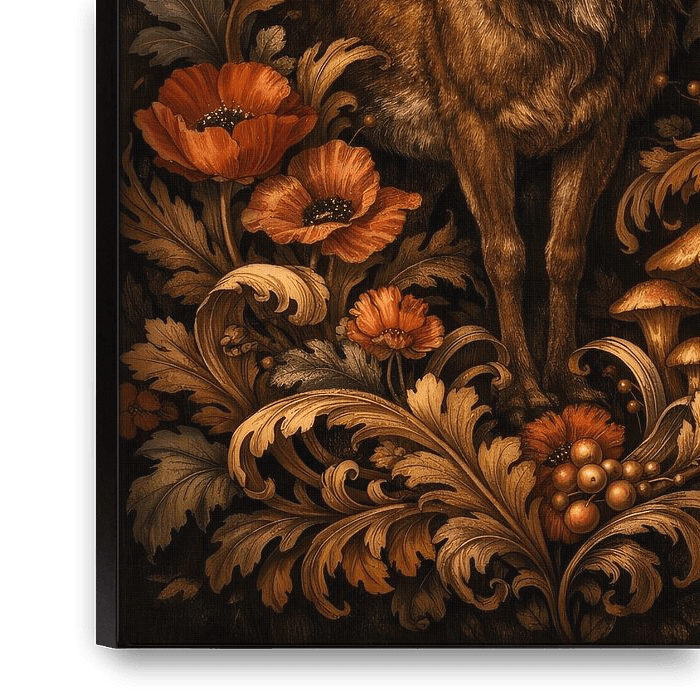 This exquisite artwork captures the serene beauty of a deer surrounded by a lush collection of brown, natural flowers. The deer, with its graceful posture and gentle gaze, exudes a sense of tranquillity and harmony. The warm earth tones of the flowers create an inviting backdrop that accentuates the elegance of the deer and evokes a…