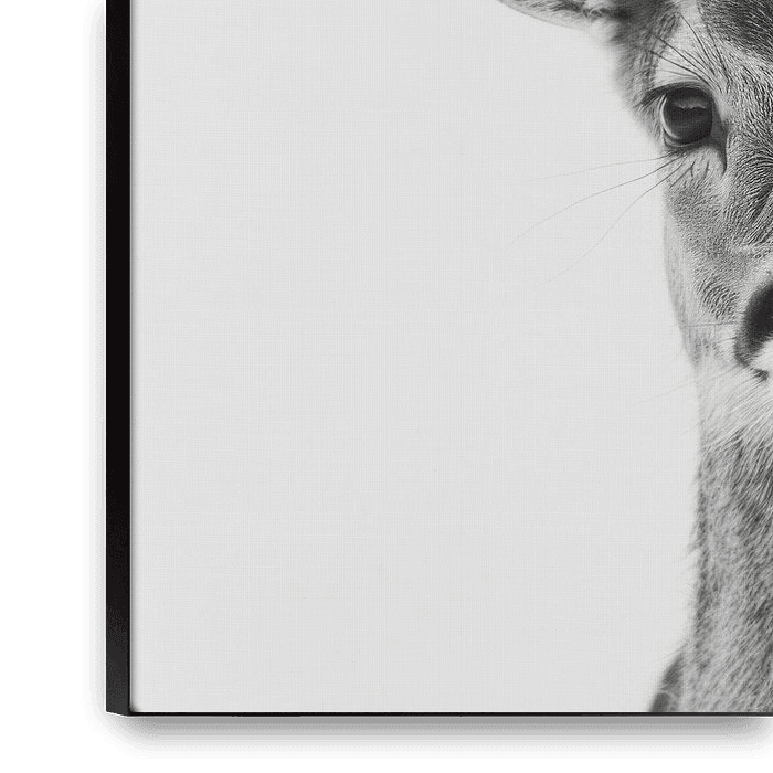 This enchanting black and white portrait of a deer radiates a calm and natural elegance. The fine details of the deer's fur and soft eyes are skilfully captured, giving the image a warm and inviting atmosphere. Perfect for nature lovers and art enthusiasts who want to add an elegant and calming touch to their home.