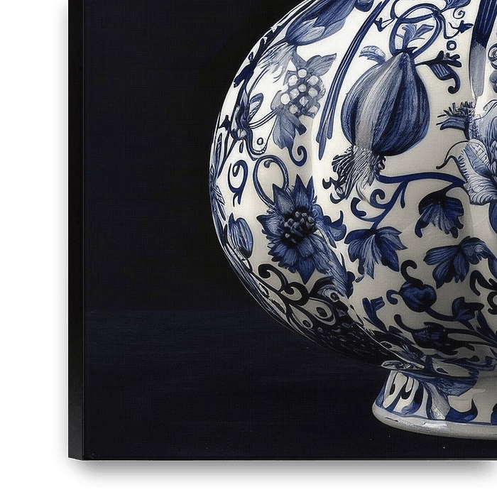 The artworks in the Delft Blue album combine tranquillity, contrast and refinement in a single recognisable style. Against a deep black background, the subject stands out powerfully, as if displayed on a pedestal in a quiet gallery. The blue and white tones subtly refer to classic ceramics and Delft-inspired ornamentation, but the stark…
