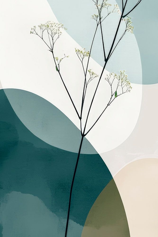 Soft pastel colours meet an elegant blossom, brought to life by simple lines and organic shapes. This harmonious composition adds a touch of naturalness and calm to any room. Ideal for the bedroom or living room, where it creates a relaxed atmosphere. An invitation to linger and dream.
