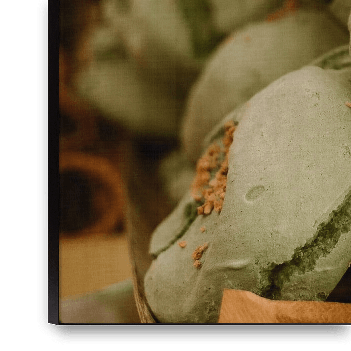 Large green pistachio meringues, for sale in a store in Venice.