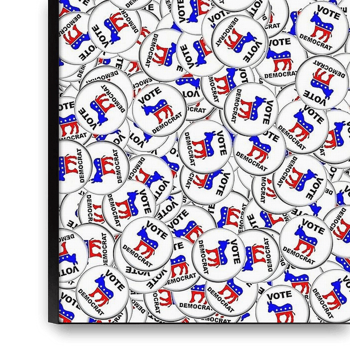 Buy this collage Democratic Button Pattern by Steven Kingsbury on canvas, ArtFrame, poster and wallpaper, printed on demand in high quality.