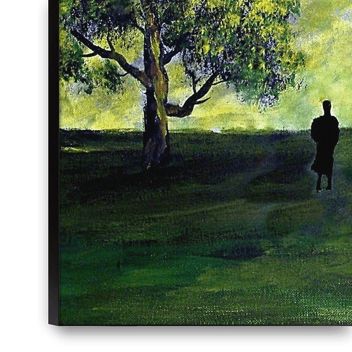 Wald,Weg,Waldweg, Mann, Grün, Abstrakt, Painting, Malerei, Acrylmalerei, Unterwegs, Kunst, Licht, Lichtung, Moderne Kunst, Expressionismus, Bäume, Gelb, Collage, Wandbild, Natur, Landschaft,