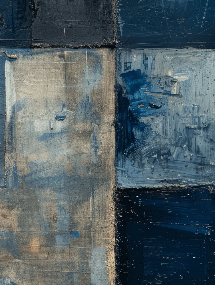 Denim blue, modern and abstract. A surprising work that will undoubtedly be a special eye-catcher in your interior. Also beautiful as wallpaper.