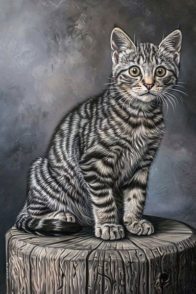 This beautiful realistic painting shows a detailed cat sitting on a wooden log. The artist has captured the cat's fur and expression with great precision, making the animal seem almost alive. The monochrome tones and subtle contrasts make this artwork a perfect addition to a modern or classic interior. The painting exudes tranquillity…