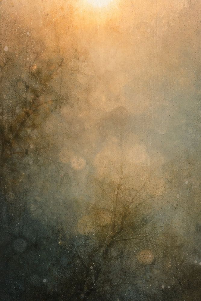 This abstract painting is more than just a visual work of art; it is an atmospheric experience that evokes emotion and brings to life the stillness of a new beginning. The work beautifully captures the serene moment when the day slowly awakens. Soft misty tones, diffuse patches of light and subtle textures blend harmoniously into a…