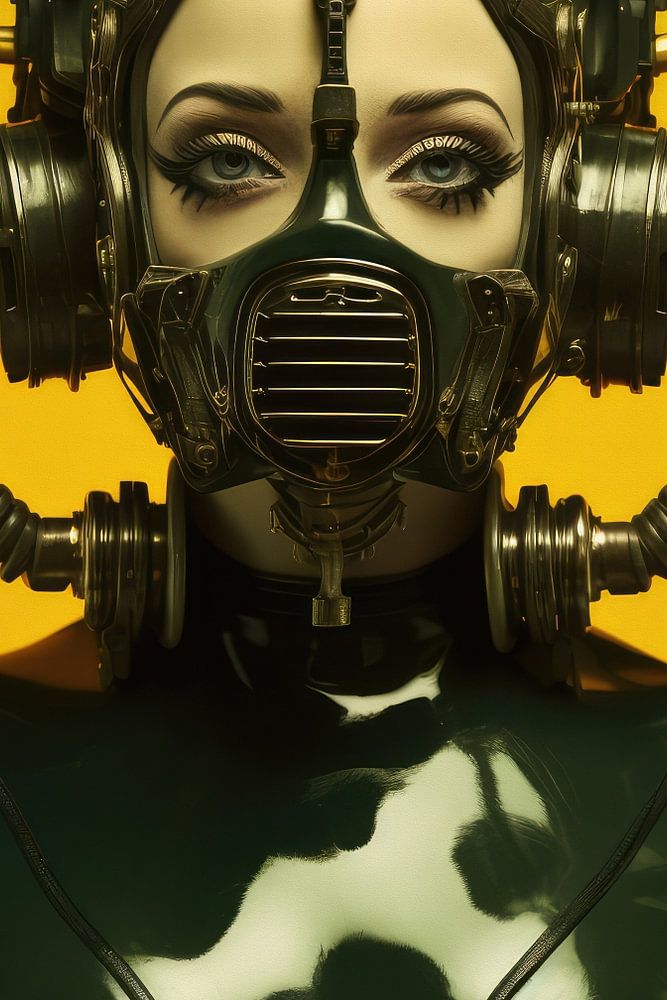 Digital created very beautiful sexy woman with bizarre fetish mask in high fashion style by Art Bizarre