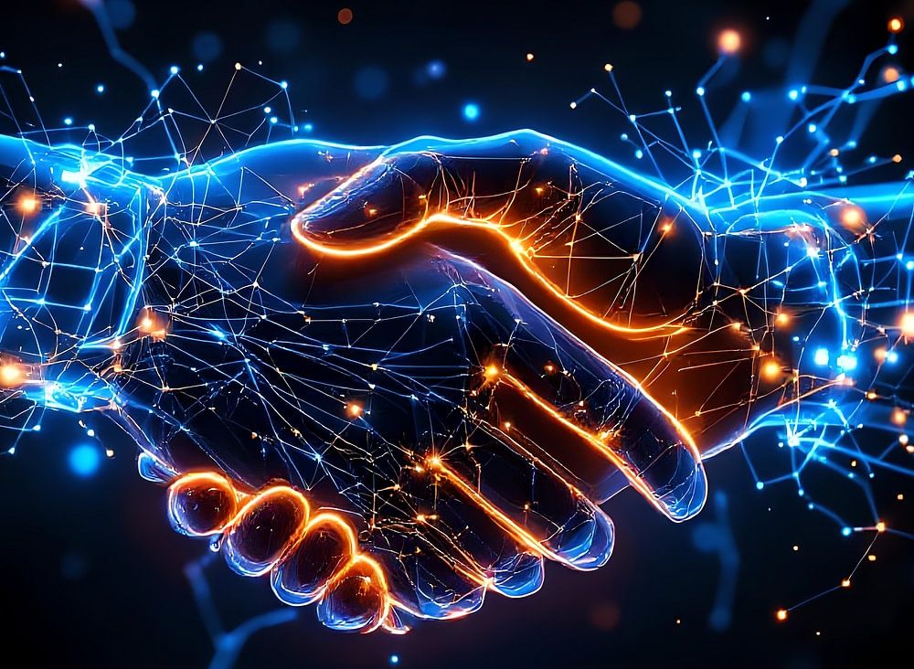 Buy this digital art artwork Digital handshake by Eye on You as a reproduction on canvas, ArtFrame, poster and wallpaper, printed on demand in high quality.
