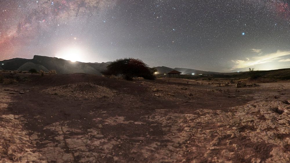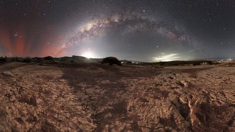 Dinosaur steps under Moon and Milkyway by Koen Pijpers