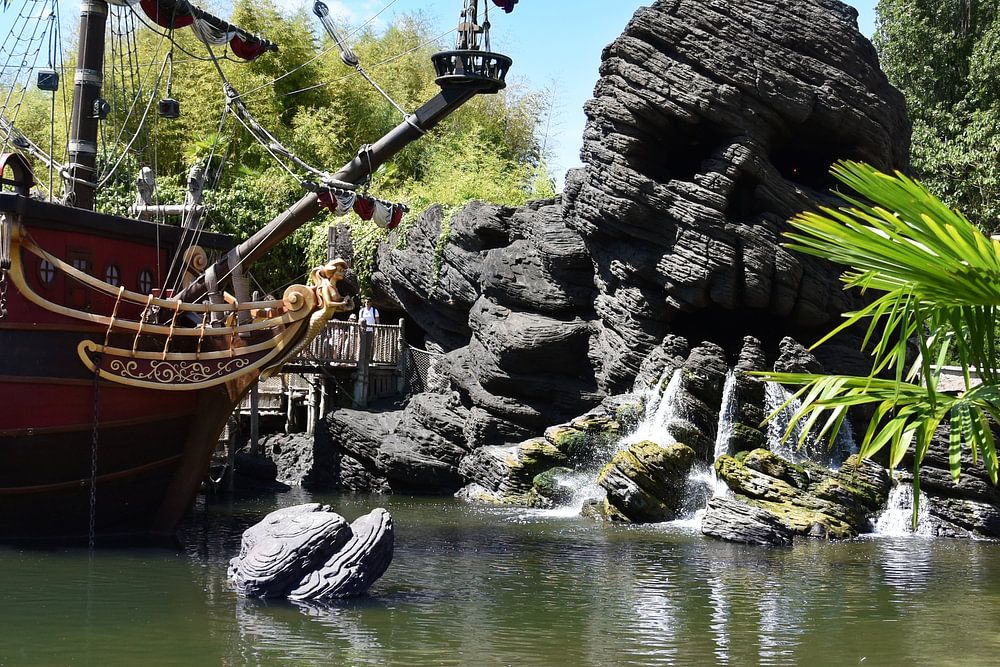 Pirates Beach, Adventureland, Peter Pan, Neverland, Pirate, lake, Palm trees.