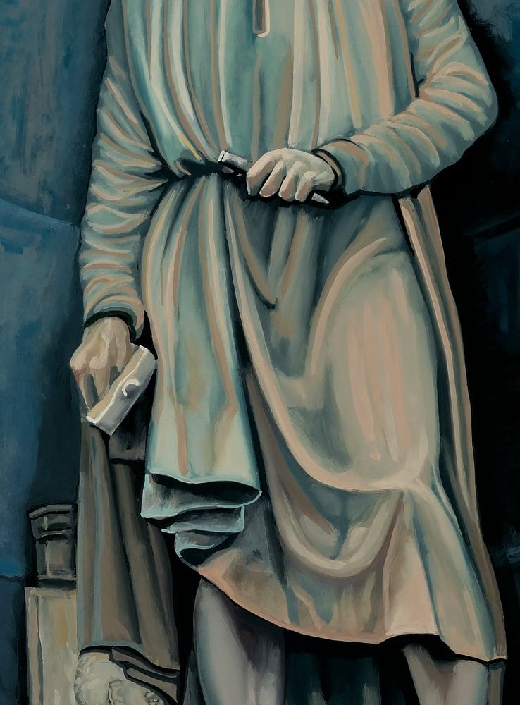 Realistic acrylic painting of the Italian Sculptor Donatello, painted by teh Dutch fine artist Paul Meijering - the original painting is 120 x 90 cm.