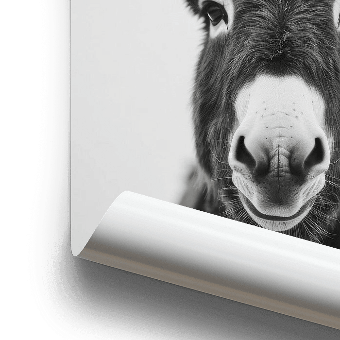 Discover the gentle grace of this donkey in a captivating black and white photograph. The fine details of its fur and the loving expression in its eyes beautifully emphasise the calm and patient nature of this animal. Ideal for living rooms, offices or farmhouse decorations, this artwork will add a cosy and rustic feel to your space. A…