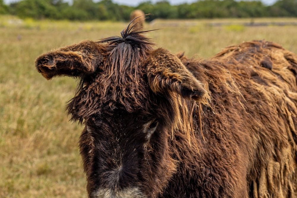 The Poitou donkey (also called Baudet du Poitou or French Giant Donkey) is one of the largest donkey breeds. It is also one of the oldest and purest donkey breeds, with its own standard. They are strong, clean animals with a shaggy, long-haired, felted coat that is somewhat similar in structure to that of Scottish Highland cattle or our own Briard Havane.