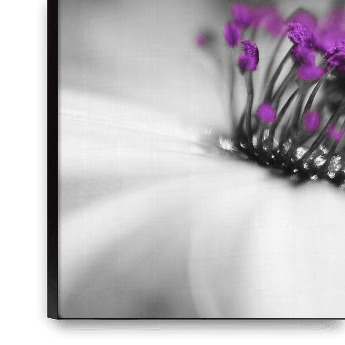 a close-up of the flower Dorotheantus. Black /white with a purple detail