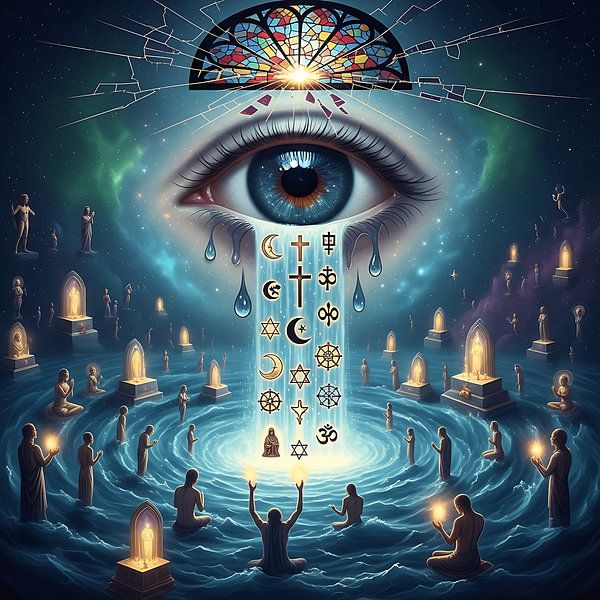Floating forms, symbolic elements, and dreamlike textures come together to create a visually poetic composition that invites deep emotional interpretation.
