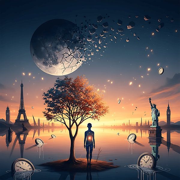 This surreal artwork explores the space between reality and imagination. Floating forms, symbolic elements, and poetic composition create a dreamlike visual narrative that feels calm yet intriguing. Designed with rich detail and balanced colors, this piece brings a sense of mystery and depth, making it a perfect statement artwork for…