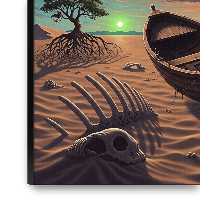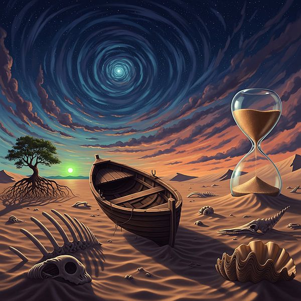 A surrealism artwork exploring the boundary between dreams and reality. Floating structures, abstract forms, and symbolic figures create an emotional visual narrative. Designed as premium wall art with a poetic atmosphere and contemporary fine art aesthetics.