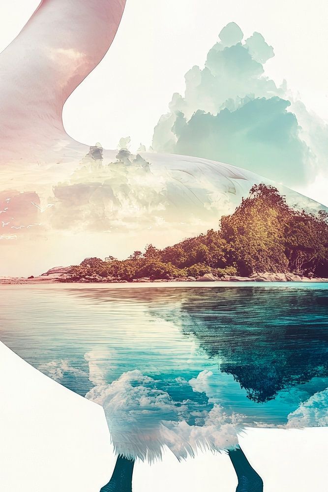 A majestic swan, interspersed with a dreamlike landscape, casts a spell over the viewer. The soft colours and harmonious composition create a feeling of freedom and tranquillity. This work of art transforms every living room into an oasis of serenity and invites you to dream. An eye-catcher that invites you to linger.