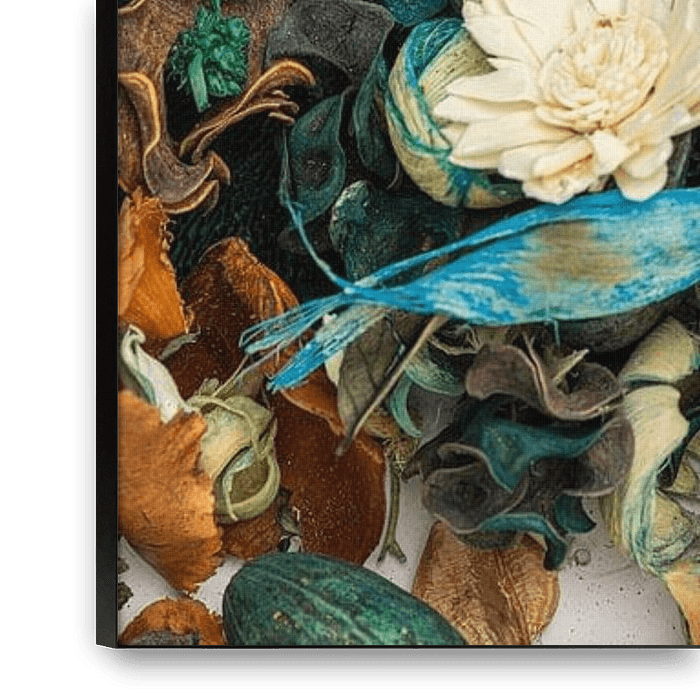 Buy this flower art Dried flowers in a colour composition by Alexander Baumann on canvas, ArtFrame, poster and wallpaper, printed on demand in high quality.