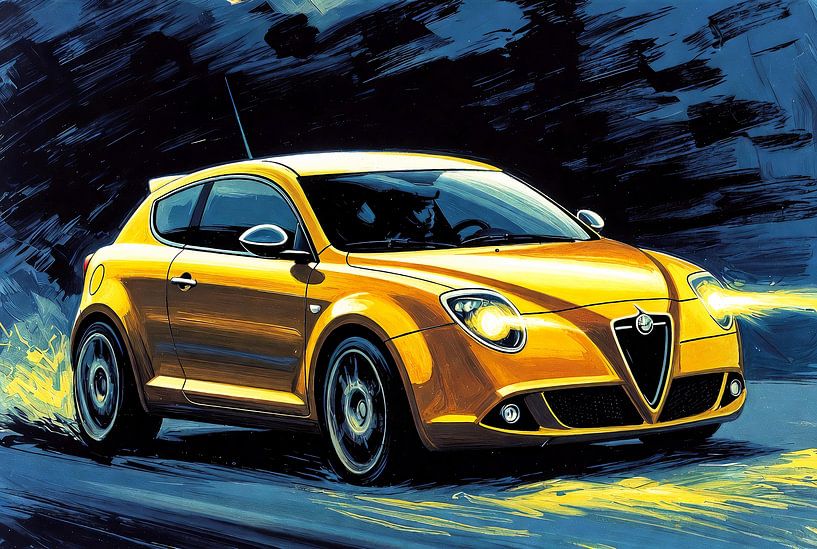Speeding along in a nimble yellow Alfa Romeo Mito