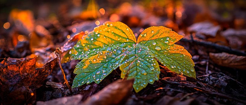 Drops on a colourful leaf by Poster Art Shop