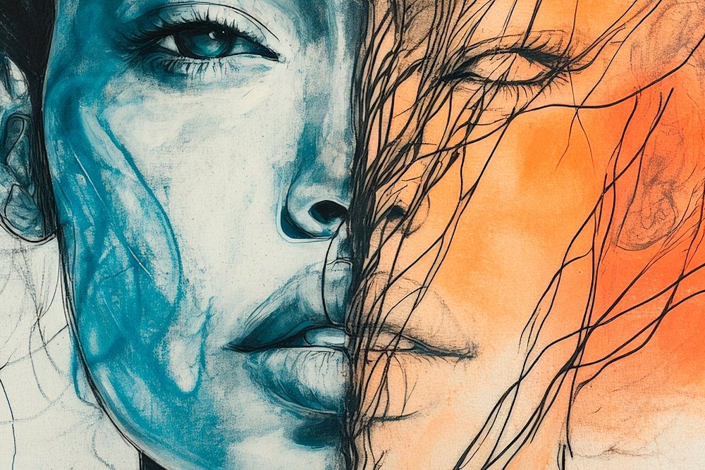 Contrasts merge in this powerful depiction: the cool calm of the blue tone with the fiery intensity of the orange. The facial details flow into a fascinating interplay of emotion and energy. Perfect for a modern living room, this work of art attracts admiring glances and encourages reflection.