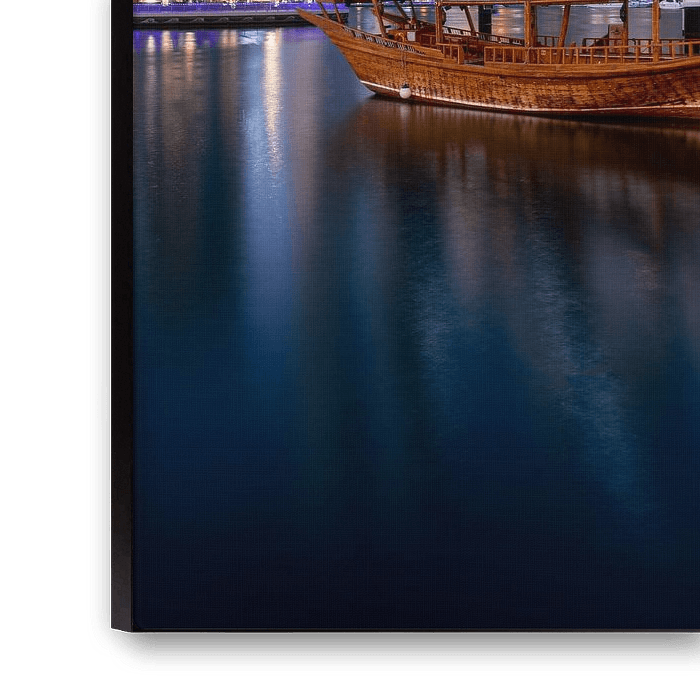 Buy the photo Dubai Marina Dhow during the blue hour by Michiel Dros on canvas, ArtFrame, poster and wallpaper, printed on demand in high quality.
