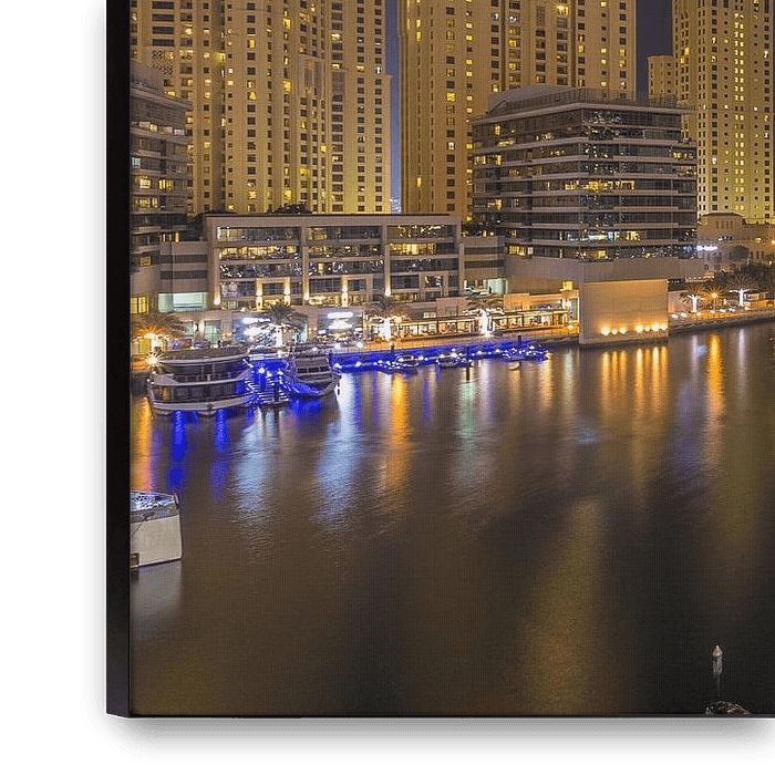 This photo with the characteristic tall buildings in Dubai Marina was made on an evening in October 2016. It is very nice to have an evening walk in this area. There are many photogenic spots and all the buildings are beautifully illuminated.