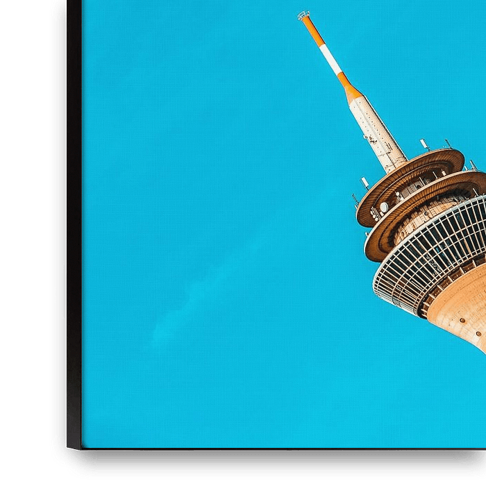 Buy the photo Düsseldorf Rhine Media Harbour Television Tower and Office Facade by Dieter Walther on canvas, ArtFrame, poster and wallpaper, printed on demand in high quality.
