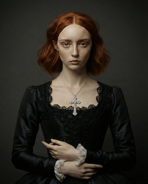 Buy this portrait Dutch Girl in Black by Frank Lavooij on canvas, ArtFrame, poster and wallpaper, printed on demand in high quality.
