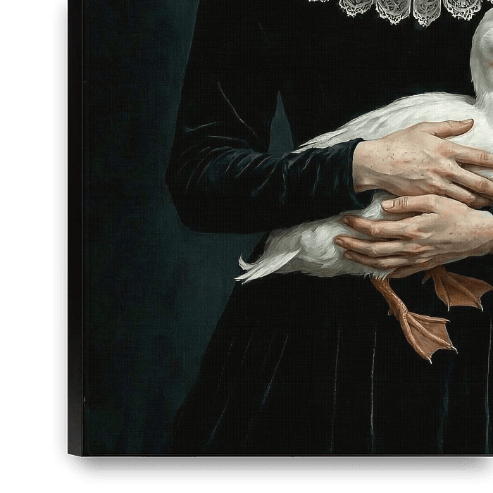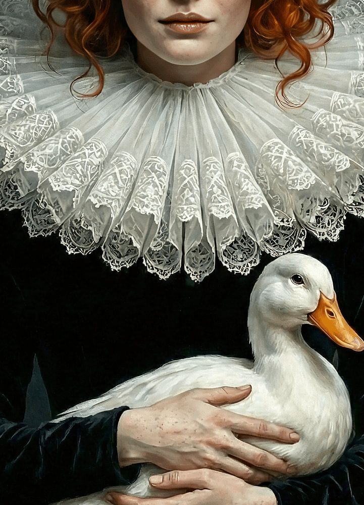 Buy this digital art artwork Dutch Redhead with duck by Frank Lavooij as a reproduction on canvas, ArtFrame, poster and wallpaper, printed on demand in high quality.