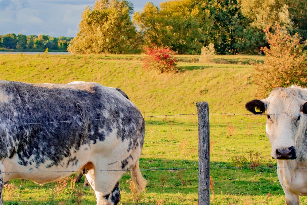 Two Dutch nice cows on the meadow pose for the camera. The colours show that autumn is just around the corner.