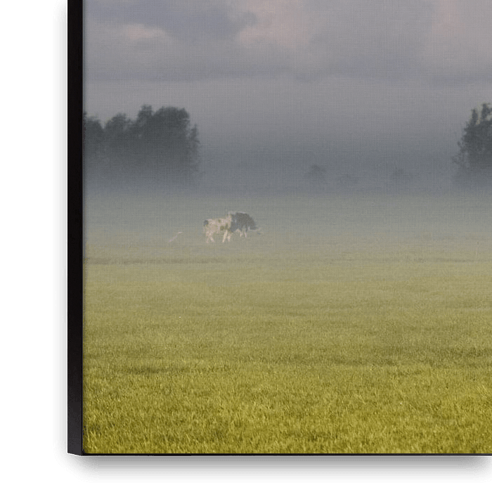 Buy this landscape artwork Dutch misty landscape in IJlst with grazing cows and a typical Dutch cloudy sky. Wout by Wout Kok on canvas, ArtFrame, poster and wallpaper, printed on demand in high quality.