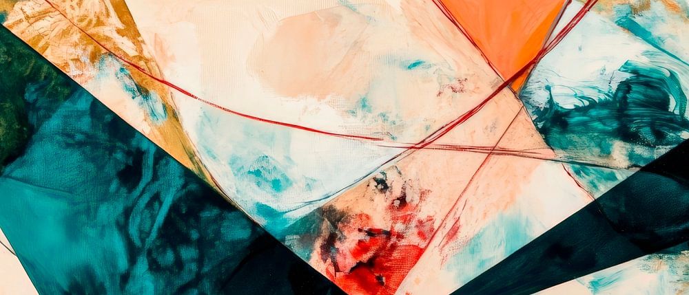 A harmonious interplay of geometric shapes lends the room a dynamic energy. The contrasting colours - deep turquoise and vibrant orange - catch the eye. This vibrant composition is perfect for a modern living room, where it stimulates conversation and encourages creative inspiration.