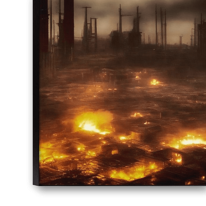 The painting invites the viewer to immerse themselves in a dystopian future and reflect on the consequences of human actions. It raises questions about environmental destruction, technological overdevelopment and the loss of nature. The bleak atmosphere leaves room for interpretation and encourages reflection on the consequences of our current choices.
