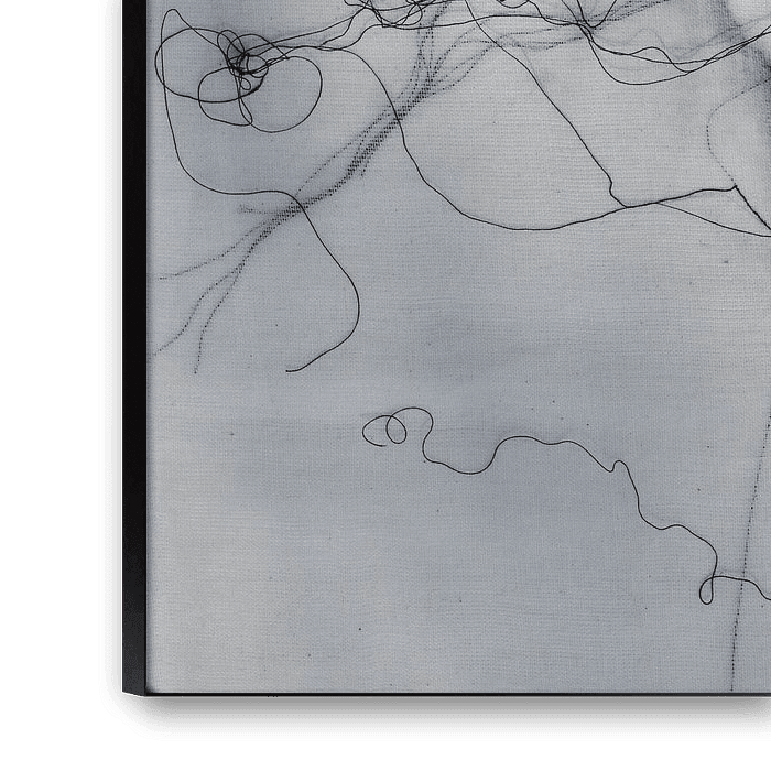 The black thread plays the main role in my works, inspired by the moments of life, I hope to give the viewer a moment or feeling of recognition, an inner experience, something that makes you wander into your own thoughts. My loose threads represent growth & change.