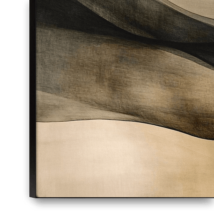 This design brings a serene atmosphere with its subtle earth tones and flowing shapes. Its abstract nature is reminiscent of sand dunes or gentle waves coming together, which makes the artwork ideal for calm, minimalist interiors. The monochrome colour palette gives a timeless feel that fits seamlessly into a variety of interior styles,…