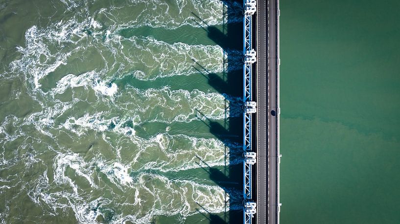 A powerful symbol of Zeeland's struggle against water. The colour of the sea matches perfectly with the white foam heads as the water follows the tide.