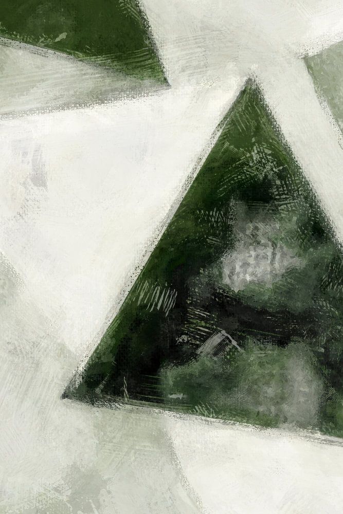 "Echo of the Mountains" is an abstract exploration of spirituality and serenity, inspired by the delicate balance of prayer flags moving through the wind in the high mountain ranges of Tibet. The triangular shapes suggest the peaks of mountains that symbolise both stability and spiritual exaltation. Just as prayer flags catch the wind and carry prayers into the world, this work captures the essence of resonance and reflection, with each surface reflecting energy and stillness. The subdued colours reinforce this meditative character, while inviting reflection.