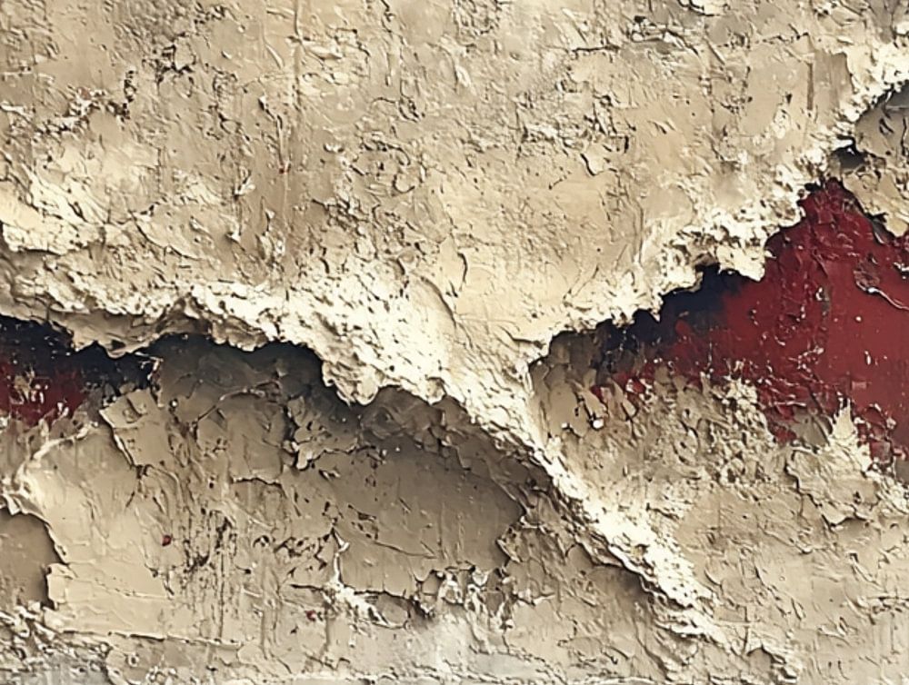 The abstract painting combines deep wine red and soft beige tones in a powerful interplay. Flowing surfaces are punctuated by subtle drip effects that run along the canvas like traces of movement. The colours blend warm and earthy, with a sense of depth and elegance. The whole looks intense, layered and expressive.