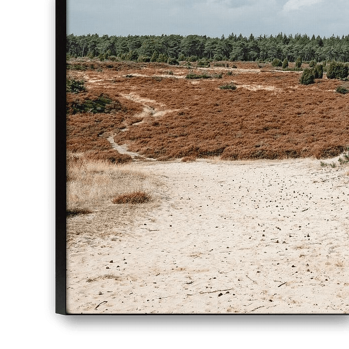 Especially because of the tranquillity of the area, which is reflected in this photo. The sand and heather plus the beautiful clouds make this photo a haven of peace in your home or office.