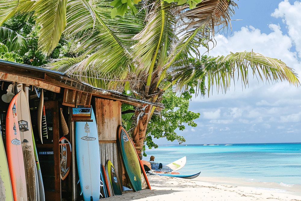 Imagine the gentle murmur of waves, the whisper of palm leaves, and the warm sun colouring the landscape as you browse through the latest collection of surfboards. This place is an oasis for surfers and beach lovers alike, where the beach becomes your front yard. With a wide range of surfboards, from vibrant shortboards to stately longboards, there is something for everyone. Each board tells a story of adventures on the waves, ready to become part of your stories. This is not just another shop, it is a destination where the sea and sport come together, where passion for surfing is tangible. A place where you don't just buy a surfboard, but a piece of paradise.