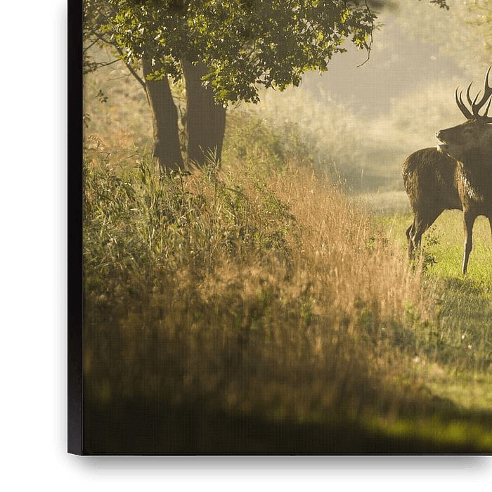 Soms vallen alle puzzelstukjes op hun plaats: Sprookjesachtig ochtendlicht, lichte grondmist en dan ook nog een Edelhert dat eventjes op de juiste plek wil gaan staan.